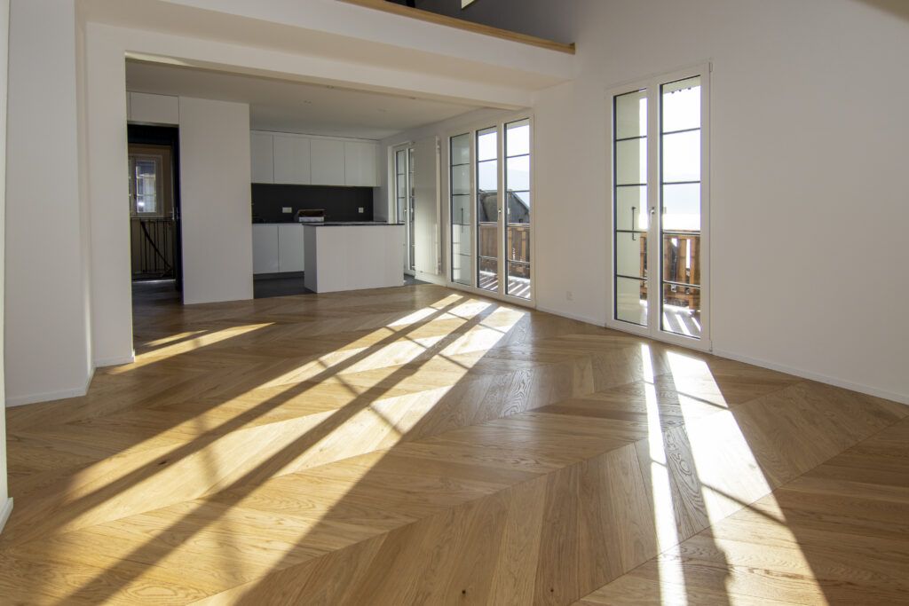 Prenez par exemple ce mandat de photographie pour la fin de chantier de l’entreprise Oberson parquets dans la région de Vevey. Sans ameublement ni décoration, la lumière et l’espace deviennent les principaux acteurs, révélant la qualité du produit et de la pose.